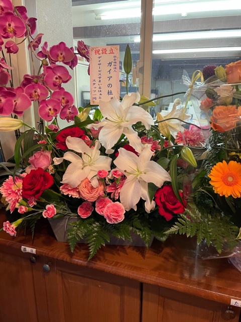 社会福祉法人設立に伴い関係者よりたくさんのお祝いのお花をいただきました。