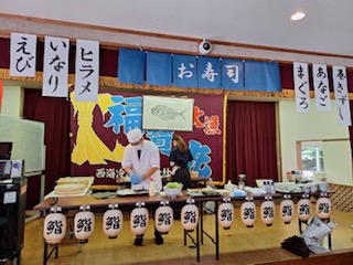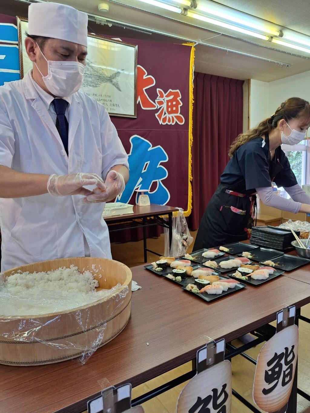 寿司バーIn新上五島 長崎より寿司職人をお招きして、たかのしの杜にて寿司バー開催。 利用者 職員合わせての100食人分を準備してもらいました。普段と違う施設の雰囲気に利用者の皆様も大変大喜びの様子でした。 いつもより食が進む利用者もたくさんいたようです。YさんNさんのお力添えに心から感謝とお礼申し上げます。ありがとうございました。