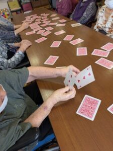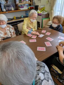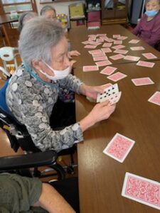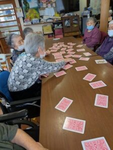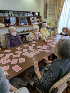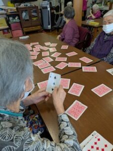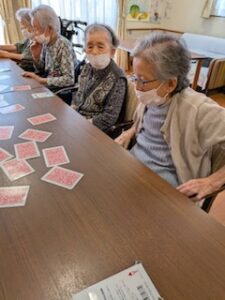 ♣神経衰弱♠~LIAN南ヶ丘~ 投稿者:nagasaki 投稿公開日:2025年9月22日 投稿カテゴリー:ブログ 本日は、皆さんで神経衰弱をしました~! この日は、社長から『おはぎ』を頂いたので、みなさん早く食べたくて ソワソワしていました😊 そんな中でゲームがスタート~! まずはみなさん、どこに何があるか探していきます🤔 どこだったかな~?? おや!?ついに揃いました~♡!! お✨!!こっちも揃いましたね~すごい👏👏 みなさん次々とカードを揃えていき、 ゲームがおわるとすぐ手指消毒をして美味しいおはぎをいただきました😊 頭を使った後のおはぎはとても美味しかったです💖 おすすめ 節分~すまいるはぁと~ 2018年2月5日 ひな祭り🎎昼食会~すまいるはぁと~ 2021年3月3日 ハンドベル体験🔔~すまいるはぁと~ 2021年10月1日