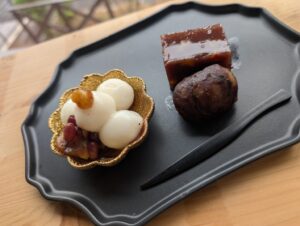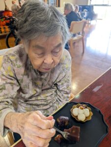 お月見団子🎑のおやつセット(ピア葉山) 投稿者:nagasaki 投稿公開日:2025年9月28日 投稿カテゴリー:ブログ 今年のお月見ももうすぐですね🎑🌕 みなさんと夜空を眺める機会はなかなかないのですが 「お月見団子を食べたい!!」とのお声もあり 今日のおやつは ✨お月見団子セット✨を作りました♡ 大きな栗をGETしたので、渋皮栗も前日から仕込んで・・・ とっても美味しいおやつセットが完成しました✨ 「まっ!!おいしい~!!」 「これはおいしかねぇ~💗💗」とみなさんに大変喜んで頂きました☺ お月見の夜には、ゆっくりと夜空を眺め過ごしたいなあと思います☺ おすすめ 外食・買い物・紫陽花見学~すまいる~ 2016年5月31日 3月の名言~すまいるはぁと~ 2020年3月3日 書道会 2015年8月11日