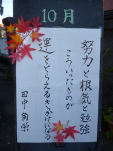 今月の名言🖌~すまいるはぁと~ 投稿者:nagasaki 投稿公開日:2025年10月1日 投稿カテゴリー:ブログ 「努力と根気と勉強 こういったものが 運をとらえるきっかけなる」 田中 角栄 おすすめ 素晴らしい👏~すまいるはぁと~ 2022年7月26日 新年の書初め~LIAN南が丘~ 2017年1月6日 父の日会🎉~Lian南ヶ丘~ 2021年6月21日