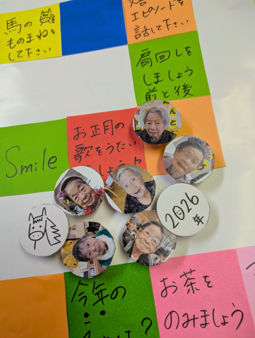 ピア葉山では、お正月の三が日の間皆さん手作りすごろくにはまり、何度もおこなったり(1日に富士山の歌を8回歌うことになったり笑)