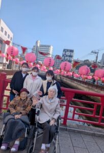 ランタンフェスティバルへ(ピア葉山) 投稿者:nagasaki 投稿公開日:2026年2月18日 投稿カテゴリー:ブログ 外出支援でランタンフェスティバルへ✨ 新地中華街とみなと公園に行きました まずは、お参りから☺ 「わぁ!!すごかね~」とランタンやオブジェに 感動して目がキラキラになった入居者様☺ お天気も良くて、とても楽しんでくださいました✨ ピンクのランタンの前でもお写真♡ 「中華街!?懐かしか~」と、思い出もよみがえります♡ 角煮まんじゅうや、ゴマ団子、胡麻パン、フルーツ飴を お土産に☺スタッフも楽しめた外出となりました☺ おすすめ 知恵の輪に挑戦🧬~Lian南ヶ丘~ 2020年10月21日 今月の格言~すまいるはぁと~ 2022年1月10日 ㊗敬老お祝い会続編🎊~すまいるはぁと~ 2022年9月22日