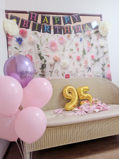 居室をバースデーフォトスポットにして、子供さんたちとパチリ✨