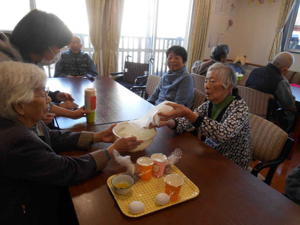 ひと足早く、バレンタイン★~LIAN南が丘~ 投稿者:nagasaki 投稿公開日:2017年2月13日 投稿カテゴリー:ブログ 本日、Lian南が丘ではひと足早くバレンタインのお菓子作りをしました^^ まずは皆で生地作り♪ まぜまぜまぜまぜ 「おいしくなぁれ」と愛情込めながら…(*^_^*) できた生地はそれぞれ自分のカップに入れ、 一人一杯ずつでしたが、二杯目を入れようとされる方も…(笑) 電子レンジで温め完成(^O^) 皆さんあっという間に完食されてました! HAPPY Valentine’s Day おすすめ 手作りおはぎ~すまいるはぁと~ 2015年3月20日 土用の丑の日~すまいるはぁと~ 2018年7月20日 謹賀新年🎍~Lian南ヶ丘~ 2021年1月1日