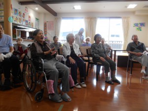 音楽療法 ~Lian~ 投稿者:nagasaki 投稿公開日:2015年7月16日 投稿カテゴリー:ブログ 今日リアンは、月に一度の音楽療法の日でした。 今回は楽器を使って、、 鳴子やしゃもじ、木魚でリズムをとりながら イキイキと歌をうたう姿が見られました ♪ 先生に「ここの方達は声が大きいですね!」と 褒めていただきました☆良い事ですね!! 戦争中の歌では、当時を思い出したようで 涙を流されるご利用者様も・・ 来月も楽しみです ^^ ありがとうございました。 おすすめ 今月の格言🌠~Lian南ヶ丘~ 2021年9月1日 誕生お祝い会🎉~すまいるはぁと~ 2024年4月14日 スケジュールいっぱい~すまいるはぁと~ 2015年3月26日