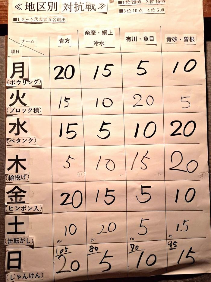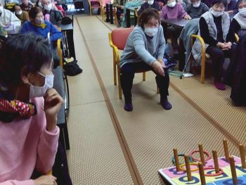 地区別対抗戦🚩たかのしの杜 たかのしの杜で1週間に渡る 熾烈な戦いが繰り広げられていました! 地区別4チームに分かれてじゃんけん、輪投げ、ピンポン入れなど 毎日違う種目に挑戦していただき、 毎日毎日抜きつ抜かれつのデッドヒート!! 他の地区に負けないぞ!と 各地区チーム一致団結して応援にも力が入りました(*^▽^*) 負けたチームは「次いつするとか?」と 早くもリベンジに闘志を燃やしていました( *´艸`) 最後は地区別で記念撮影をし、 年の瀬に大盛り上がりした対抗戦となりました!
