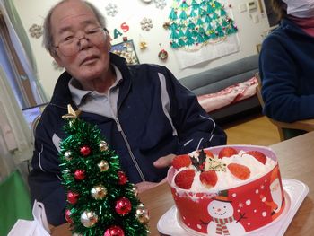 お誕生日会🎂デイサービス 12月生まれのお客様のお誕生日会を行いました! 金色の衣装を見て「何事か?」と驚かれ、 「米寿のお祝いをします」とお伝えすると 「もうそんな年になるとか」と ご自身の年齢に驚かれていました( *´艸`) 皆様からの「おめでとう」に喜ばれ、 もう1名お誕生日のお客様からは 「次は私よ」との声が聞かれていたので、 来年一緒に米寿のお祝いをしましょうね♫ これからも元気にお過ごしください! お誕生日おめでとうございます☆彡