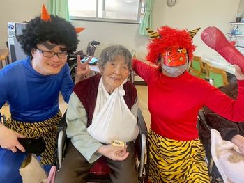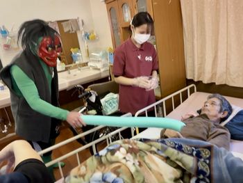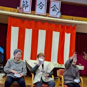 節分👹nagomi お客様の無病息災を願って豆まきをしました🙌 職員もお客様と一緒になって楽しみ、 普段なかなか発語するのが難しいお客様も 「鬼は外、福は内!」と参加してくださいました😊 今年も健康に長生きしましょうね(*^▽^*)