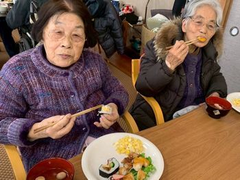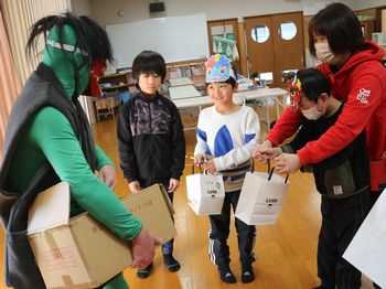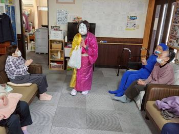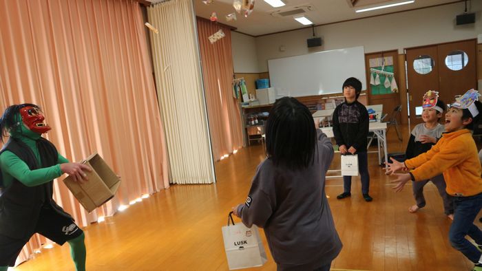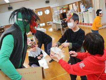 節分👹さんくす 今年もさんくすに鬼がやってきました!! お客様が自ら鬼役を志願してくださり 一味違った節分となりました( *´艸`) 鬼を退治したのはまさかの福の神!? 今日のおやつをお土産に持ってやってきてくれました🎁 豆まきで盛り上がったあとは 調理員さんが作ってくれたちらし寿司をおいしくいただきました♫