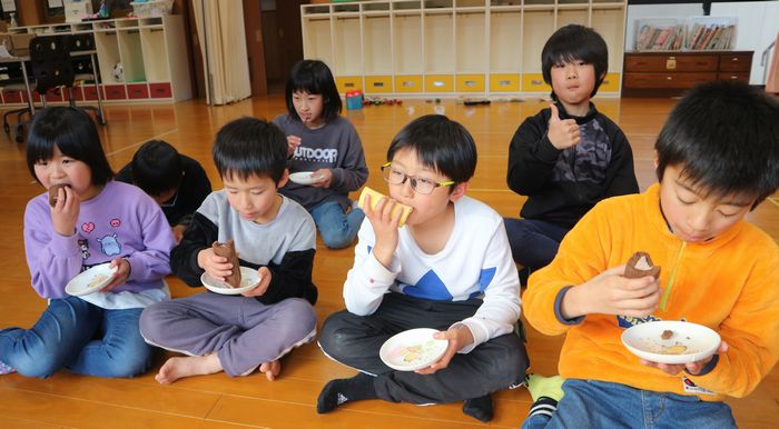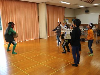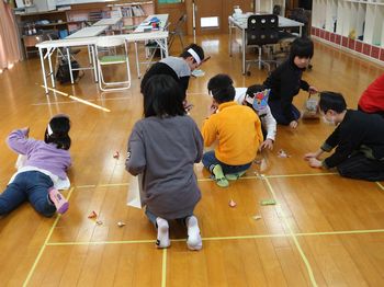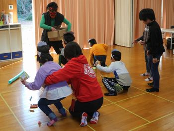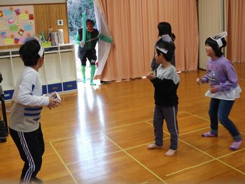 節分👹スマイルKids 節分の日、児童たちが「鬼は外~!」と豆まきをしていると、 外から本物の鬼がやってきました👹!!! 児童たちはびっくりしながらも嬉しそう( *´艸`) 豆ではなくお菓子巻きでたくさんお菓子を拾って、 細長いロールケーキを恵方巻の代わりにして 静かに願いをこめながらいただきました🌟