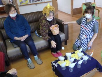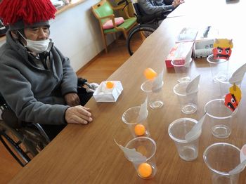 節分👹2番館 今日は2番館の鬼退治! お客様と節分仕様のボール投げや的あてゲームを楽しみました♫ 昼食の手巻き寿司ではそれぞれお好みで恵方巻を作っていただき、 「手巻き寿司嬉しか~」と とても喜んでくださったので、 職員も嬉しくなった節分でした😊