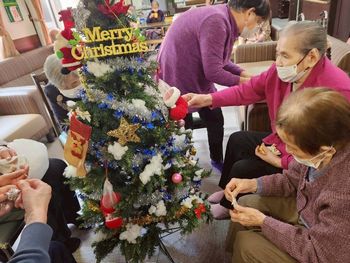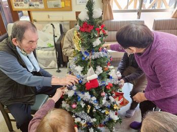 クリスマス会🎄さんくす さんくすのクリスマス会🎄 今年もお客様と一緒に飾りつけ♫ 今回はお客様が自らサンタ役を引き受けてくださり、 お客様に挨拶とプレゼントを渡してくださいました🎁 クリスマスのご馳走も 最初は「こんなに食べきれんよ~」と言われてましたが、 「おいしい、おいしい」と皆様あっという間に完食🙌 終始笑顔のクリスマスとなりました(*^▽^*)