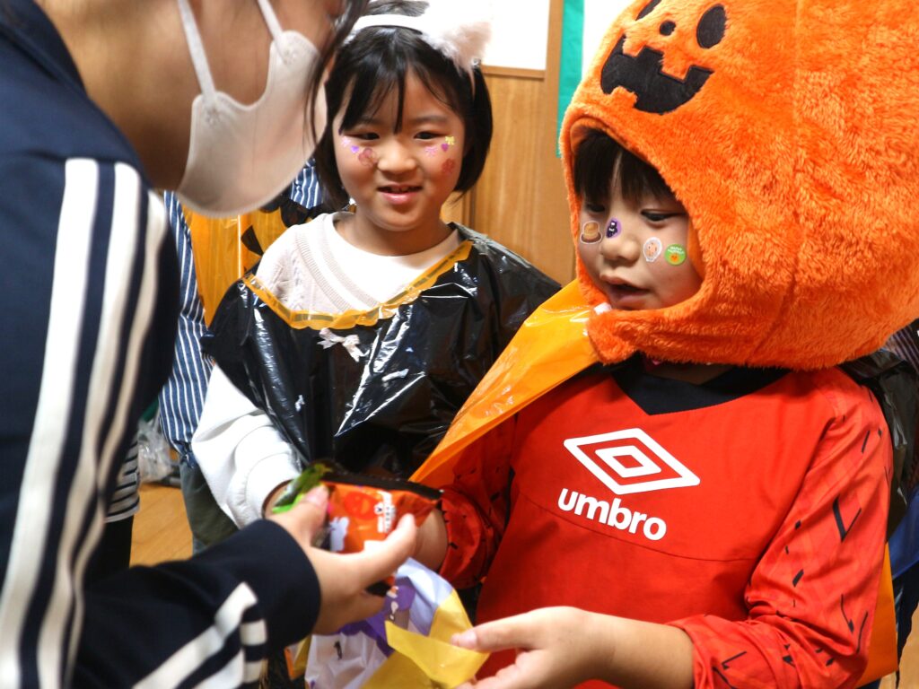 ハロウィン🎃デイサービス ハロウィンで今年も奈摩保育所の児童が かわいらしい仮装をしてやってきました! 歌って踊るかわいらしい姿に お客様も窓から身を乗り出して喜ばれてました(*^▽^*) 今年もお菓子が入っているバッグはお客様の手づくり♫ お菓子をもらって喜ぶ児童を見て お客様も嬉しそうなご様子でした! また来年も楽しみにしています(*^▽^*)