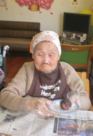 手作りおはぎ作り~1番館 まごころ込めて手作りしたものはおいしくなります♪ 今日はおはぎを手作りです。 自分で食するものとあって、お客さま思い思いに心を込めて握られていました。 昼食に「うまかよ~」とほっこり笑顔でいただいていました