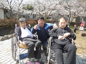 花見とおいしいお弁当~なごみ お花見シーズンの到来!ということで、陽だまりと合同で花見を行いました。 天候もよく、「天気のよくて良かったね」「桜のきれかね」との声が聞かれておりました。 が……。 食事の時間になると‘‘花よりだんご’’で、お弁当に夢中になるお客さまも多くいらしゃいました。 久しぶりにのんびりとお花見ができ、みなさま笑顔で過ごされました。