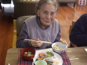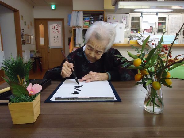 2番館のお正月♪ あけましておめでとうございます! おとそを頂き、おせち料理の中身を見ながら「魚のてり焼きがはいってるよ」、 「なますもおいしかよ」と会話をはずませる皆さま。 お昼からは書き初めに挑戦しました!「何て書こうかな」と悩みながらも楽しそうに、筆を進ませておられました。 おいしく楽しく、良いお正月を過ごすことができました♪