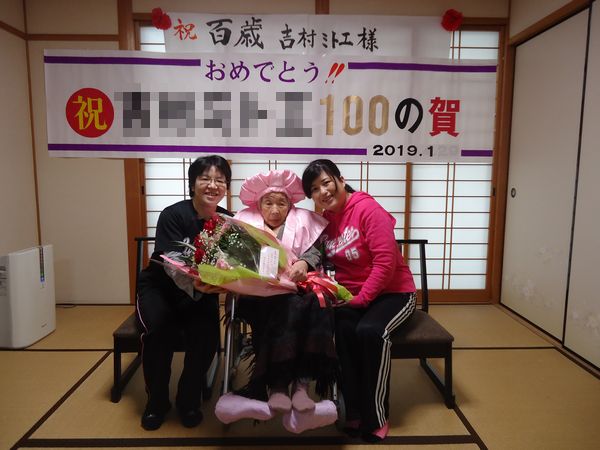 祝米寿!お誕生会♪1番館 おめでたいお正月の1番館にお誕生日のお客様が♪ 88歳、米寿のお誕生日を迎えられたお客様です。 皆さまからのお祝いの言葉に「ありがとうございます」としっかりとお礼をおっしゃって いました。 介護員手作りケーキにろうそくを立て、一気に「フーッ!!」 元気に吹き消されました!これからも元気で過ごされてくださいね(^^)