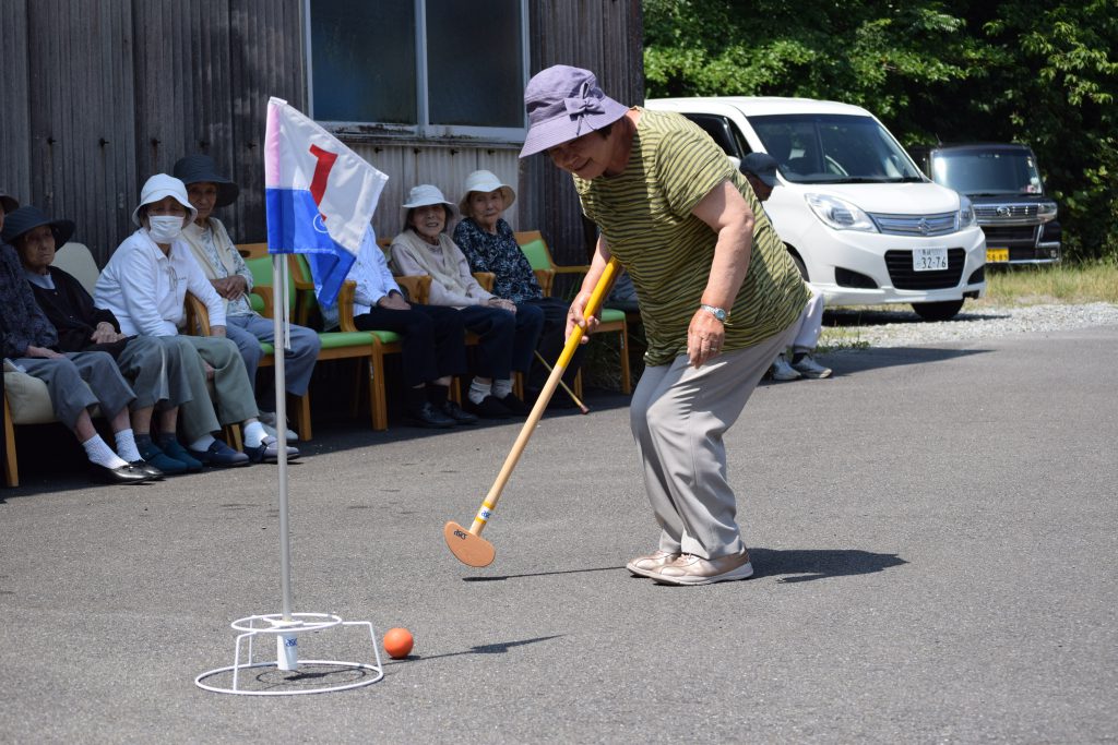 グラウンドゴルフ大会⛳さんくす 晴天の中、グラウンドゴルフ大会を行いました。 さんくす駐車場内に4ホール設定し、 全ホールを1名ずつ周っていただきました。 今まで室内での短い距離で何度か実施しましたが 屋外においてはほどんどの方が経験したことがなく、 アスファルトの上での力加減に苦労するかと思いきや 2名の方がホールインワンを出して大盛り上がりとなりました! 久しぶりの野外活動で少し疲れも見えましたが、 程よく体を動かしてリフレッシュできた様子でした(*^-^*)