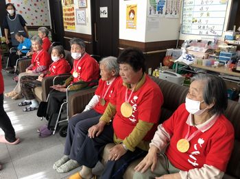 秋季運動会⛳さんくす さんくすにて、 赤と青のチームに分かれて秋季運動会を行いました! 豆つかみ、魚釣り、ボウリング、グラウンドゴルフなど 日頃取り組んでいるアクティビを 競技種目として取り入れ、 大変盛り上がり笑いの絶えない時間となりました(*^▽^*) 接戦の結果、優勝は赤チーム! 優勝チームには記念のメダルを贈呈させていただきました! 次回運動会に向けて また皆様で日頃のアクティビを頑張りましょう♫