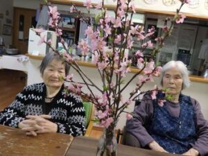 春色の2番館🌸 お客様が吊るし飾りを作ってくだいました(*^_^*) かわいらしい春の色に居室がぱっと明るくなりました! 桃の節句にはひな祭りにちなんだレクレーションを楽しみ、 桃の花も「昔は生け花も習ったとよ」と会話を弾ませながら きれいに挿してくださいました♫