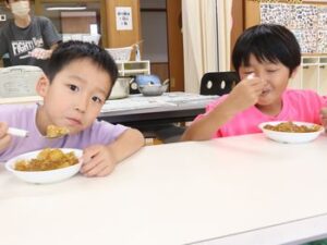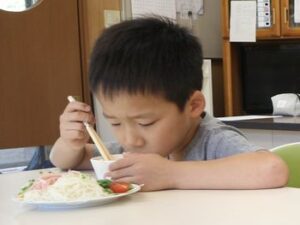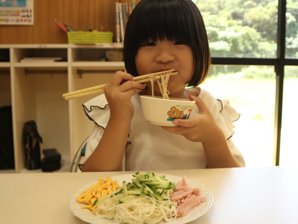 ランチ会🍴スマイルKids 7月のランチ会(*^_^*) 終業式が終わってルンルン♫で帰って来た児童たち。 「今日はカレーだ!」「いっぱい食べる!!」とおかわりしたり、 「大盛りで!」とリクエストもあり たくさん食べてくれました(*^▽^*) 夏休みに入って7月の終わりには きゅうり・オクラ・ハム・トマトなど カラフルな野菜がたくさん乗ったそうめんに 「おいしそう!」と大喜びの児童たち(*^▽^*) 3回以上おかわりをしてくれる児童もいて、 お腹いっぱいで満足そうでした♫