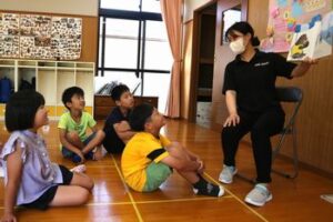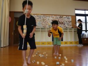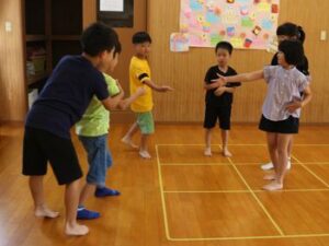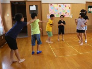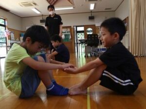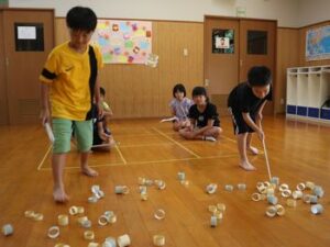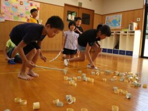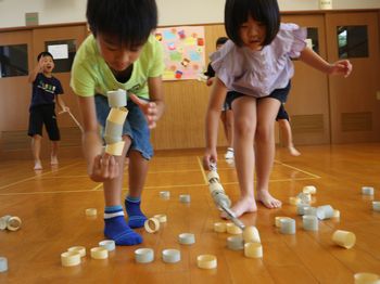レクリエーション🛝スマイルKids 本日は皆が楽しみにしていたレクレーション♫ まずは絵本の読み聞かせ(*^▽^*) ジャンケン列車では色んな人と繋がって 長ぁぁ~い列車ができました! 新聞紙で棒を作り、 輪っかを何個集められるかのチャレンジでは 白熱のバトルを見せてくれました🔥 コンビネーション力が必要な 2人1組で向かい合わせて立ち上がるゲームは皆 完璧✨ ではでは2人1組背中合わせで立ち上がろうとすると・・・? 苦戦して成功したペアは1組もおらず( *´艸`) また今度再チャレンジです🙌 笑顔が絶えない賑やかなレクレーションとなりました♫