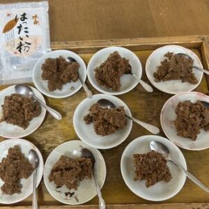 はったい粉でおやつ🍩nagomi 昔懐かしのはったい粉を使っておやつ♫ 「わぁ!懐かしい!」「何年ぶりやろか?」 「おいしい!おいしい!」と皆様あっという間に完食され、 自然と笑みがこぼれたおやつの時間となりました(*^▽^*)