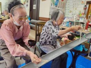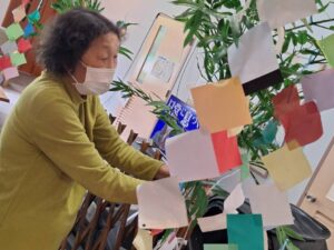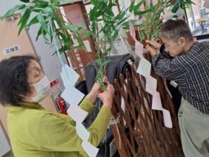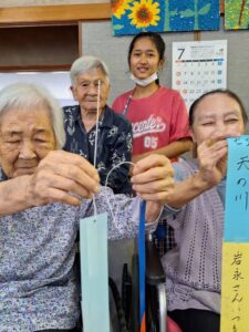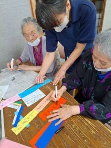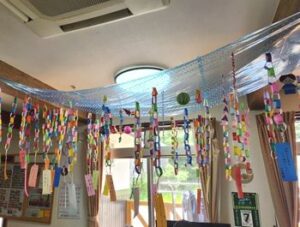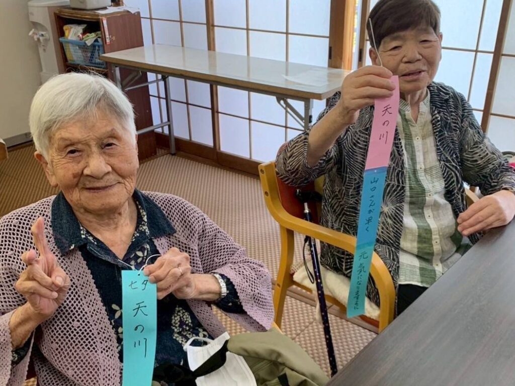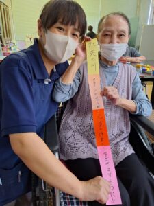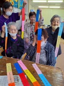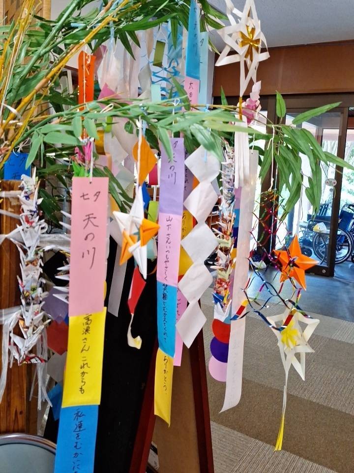 七夕飾り🎋たかのしの杜 お客様と七夕の準備♫ 「もうすぐ七夕ね」「今年は晴れるかな」と会話されながら それぞれのお願いごとと、 色とりどりのきれいな飾りをたくさん作ってくださいました! 七夕当日は料理員さんが星を散りばめたカレーを作ってくれて、 こちらも皆様 大変喜ばれ、 「おいしい」と大好評でした♫