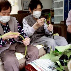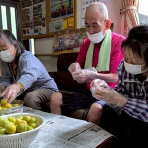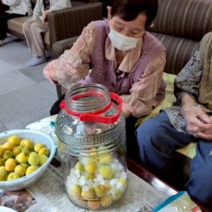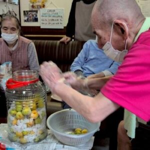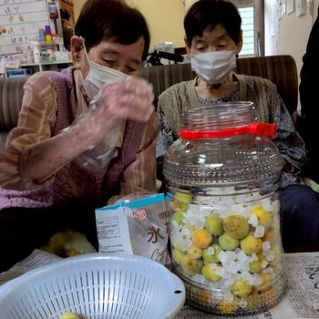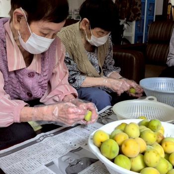 ツワの皮剥きと梅シロップをお客様と一緒に作りました♫