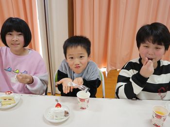 おやつのクリスマスケーキも「おいしい♫」と大喜び🙌