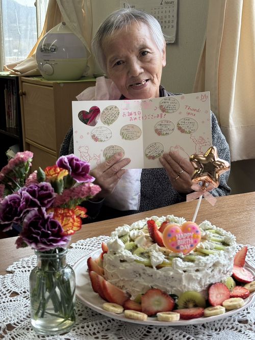 お誕生日会🎂1番館 2月生まれのお客様のお誕生日会を行いました🎉 いつも率先してあいりんのお手伝いをくださるお客様に 日頃の感謝をこめたメッセージやプレゼントに 満面の笑みが溢れていました😊 また素敵な一年を一緒に過ごしましょうね🎶 お誕生日おめでとうございます🌟