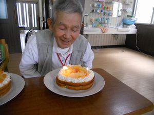 8月のお誕生日会🎂なごみ イケメンお2人のお誕生日会を行いました! 職員からのプレゼントを嬉しそうに受け取り、 職員手作りのケーキを前に一言挨拶をされたあと 美味しそうに食べて下さいました! これからもいつまでもお元気でいて下さいね(*^-^*)