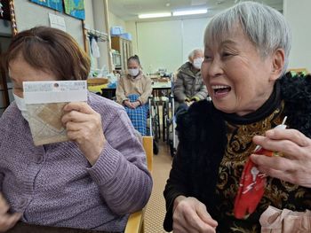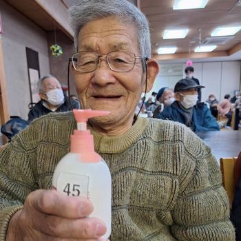 新年会🌅たかのしの杜 本日は年明けて一発目の行事、新年抽選会を行いました🎡 くじ引きをして「私はこれが当たったよ」 「あなたのもよかね♫」とお隣の方の景品も気になる様子( *´艸`) 皆様それぞれ当たった景品を手に にっこり笑顔を見せてくださいました(*^▽^*)